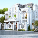 Tổng thể ngôi nhà được các kiến trúc sư thiết kế một cách khá tỉ mĩ, tỷ lệ đẹp cùng các gam màu trắng sáng, mái ngói xám nhẹ nhàng, các hệ cột, đường phào chỉ sắc xảo cùng các hệ cột, ban công nhằm tránh nắng tốt và tạo sự thông thoáng, cũng như cho tất cả các thành viên trong gia đình một chất lượng cuộc sống tốt đẹp nhất.